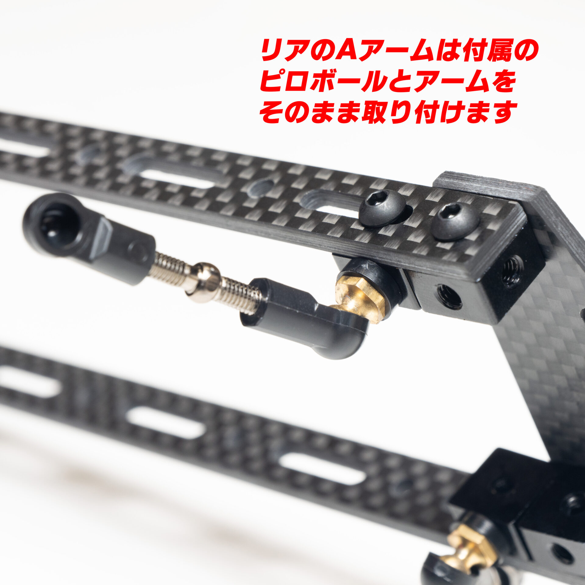 左右のプレートを縦に配置することにより適度なシャーシのねじれを残し、旋回時のトラクションアップを実現。