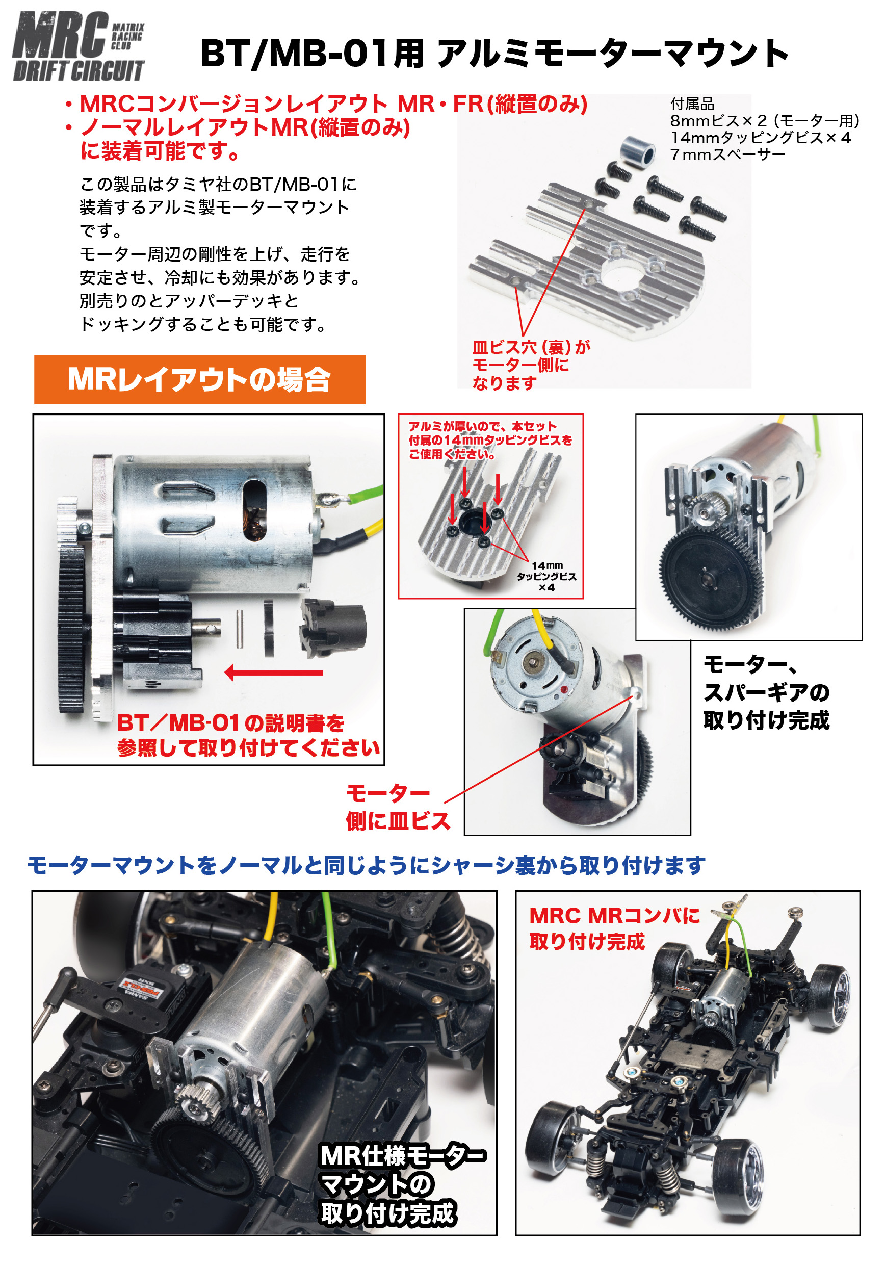 ・MRCコンバージョンレイアウト MR・FR(縦置のみ) ・ノーマルレイアウトMR(縦置のみ) に装着可能です。