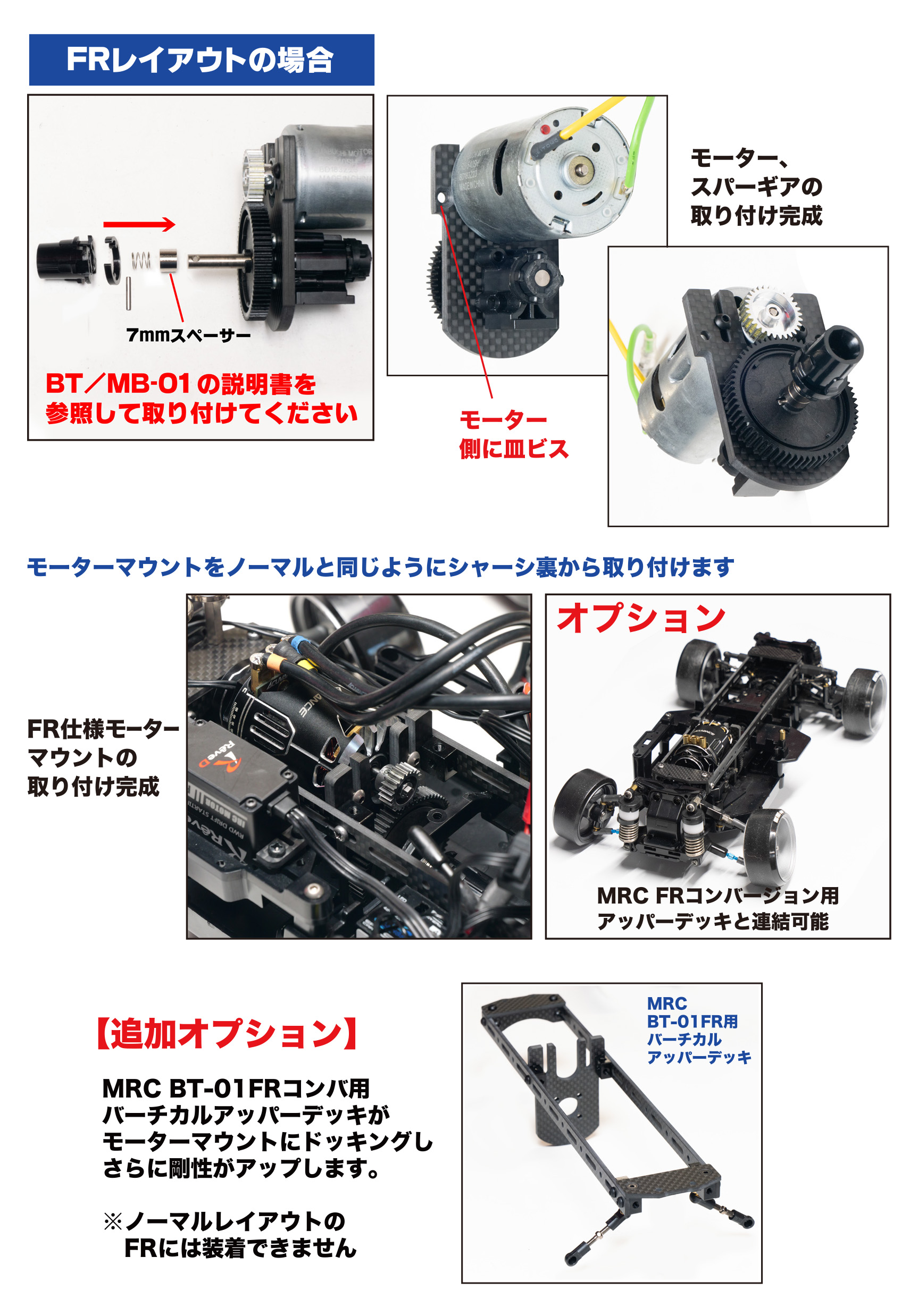 MRCコンバージョンレイアウト MR・FR(縦置のみ) ・ノーマルレイアウトMR(縦置のみ) に装着可能です。
