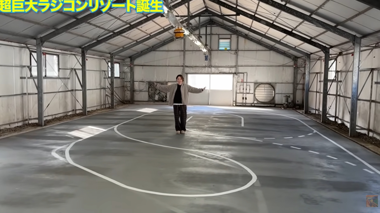 農業用施設を有効活用し、屋内にもかかわらず広いサーキットスペース確保。