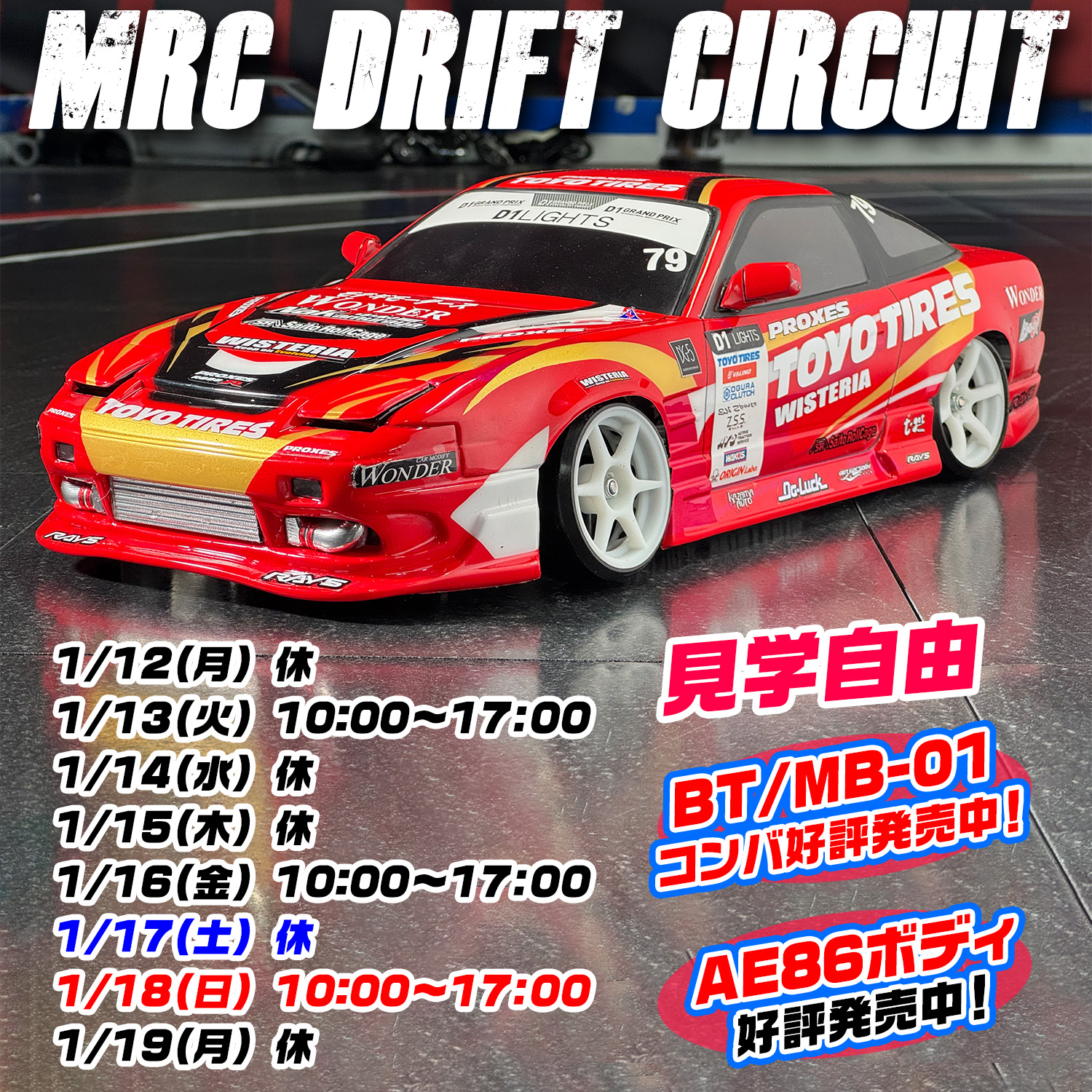 ①MRCタイヤ②TOPLINE TDT-002PR ③YOKOMO ZR-DRC ④ReveD AS-01 ⑤SHIBATA シバタイヤ HDPE ⑥OVERDOSE 08C・BUZZ BRAKE