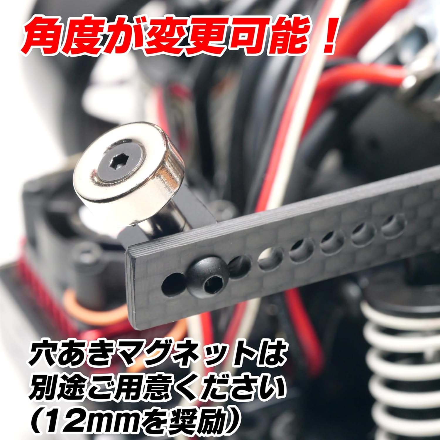 カーボンボディマウント MRCオリジナル ラジコンのボディをマグネットで取り付けるためのカーボン製ボディマウントです。 先端のマグネットの角度をボディに合わせて変更することができます。 別途、12mm(奨励)の穴あきマグネットをご用意ください。 品番:MRCBM amazon 商品一覧