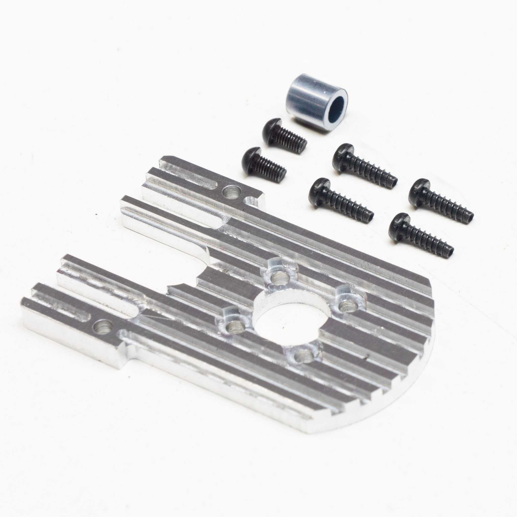 この製品はタミヤ社のBT/MB-01に装着するアルミ製モーターマウントです。 モーター周辺の剛性を上げ、走行を安定させ、冷却にも効果があります。 FR仕様では、別売りのバーチカルアッパーデッキとドッキングすることも可能です。