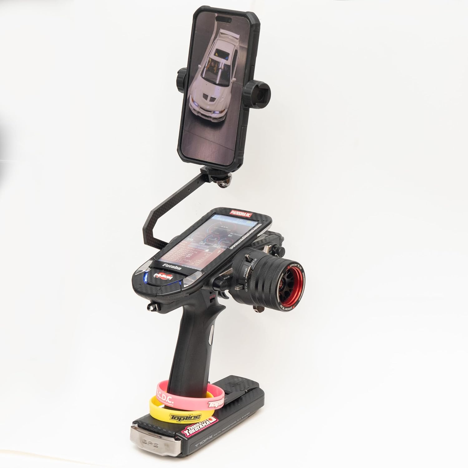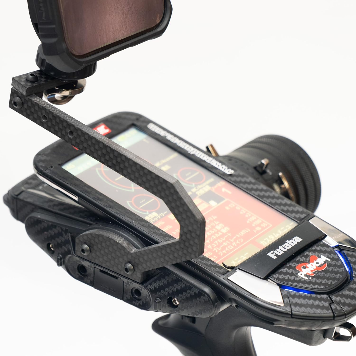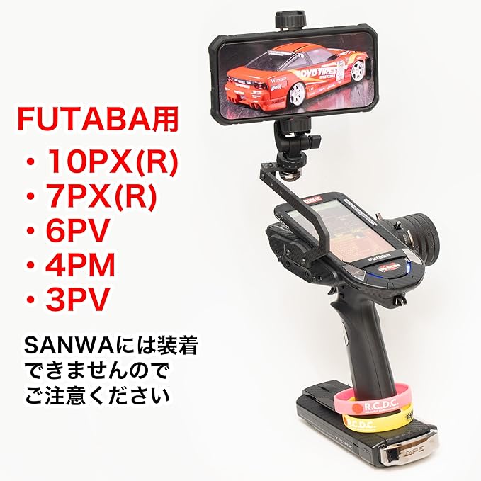 撮影用カーボンプロポハンドル MRCオリジナル 自分で操縦しながら撮影も行えるフタバ用プロポハンドルです。 フタバ 10PX(R)・7PX(R)・6PV・4PM・3PVに装着可能。 三脚ネジの標準規格である1/4インチネジが付属しています。 写真のスマホホルダはエレコム P-STSRCBK-AZ(1,280円)になります。 スマートフォンやGOPROを先端に付け、角度を調整して撮影してください。 カメラを搭載するとかなりの重量になりますのでご注意ください。 品番:MRCPH amazon 商品一覧